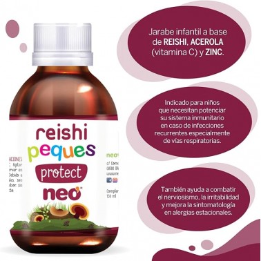 Reishi Peques Protect is a children's syrup made from medicinal mushrooms (Reishi), Vitamin C and Zinc. Due to its formulation, it is a product indicated for children who need to boost their immune system in case of recurrent infections, especially respiratory tract infections. It also helps to combat nervousness and irritability and improves the symptoms of seasonal allergies, dermatitis and eczema.