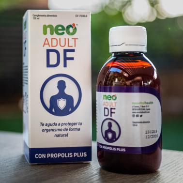 Neo Adult DF Propolis Plus is a syrup for adults made from extracts of propolis, echinacea and reishi, vitamin C and the trace element Manganese-Copper, traditionally used to boost the immune system (immunostimulant) and as a preventive for colds and viral illnesses, especially in winter and during the changing seasons.