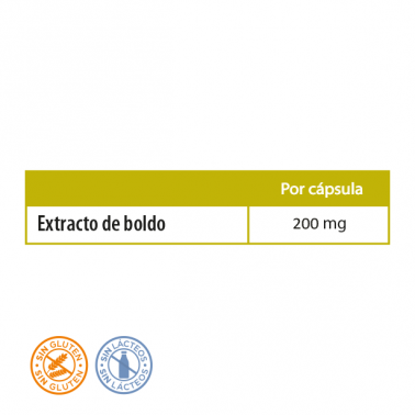 Dry extract of boldo leaves (Peumus boldus Molina) standardised to 1% boldine 200 mg, bulking agent (cellulose), vegetable wrapper (pululan), carrier (shellac), sweetener (xylitol).
