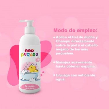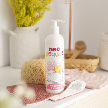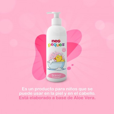 Neo Peques BATH GEL & SHAMPOO, is made with aloe vera to take care of the skin and hair of the kids, acting as a conditioner and antistatic.