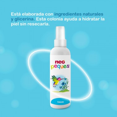 Neo Peques Colonia a base de ingredientes naturales con glicerina para hidratar la piel sin resecar. Con notas cítricas para una frescura revitalizante y un aroma duradero. Ideal para toda la familia.