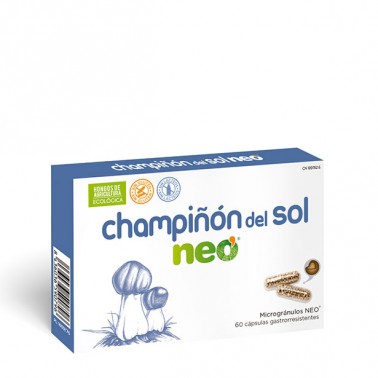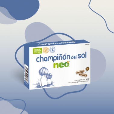 Champiñón del sol Neo es un suplemento elaborado con Agaricus blazei Murill BIO, un hongo con potentes propiedades inmunomoduladoras, antioxidantes y detoxificantes. Su combinación con vitamina C natural de camu-camu potencia su absorción y efecto.