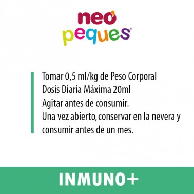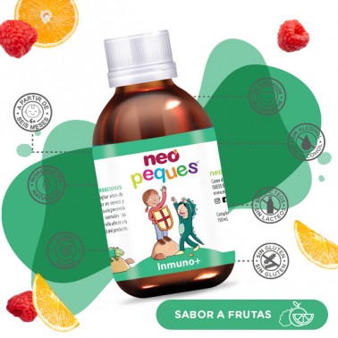 Neo Peques Inmuno+ es un jarabe infantil diseñado para apoyar y reforzar el sistema inmunitario. Contiene betaglucanos de Reishi, vitamina C y zinc, ingredientes esenciales que favorecen una respuesta inmunitaria adecuada y ayudan a mantener a los peques saludables y protegidos.