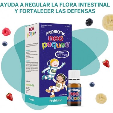 Neo Peques Probiotic es un complemento alimenticio con una mezcla de probióticos y prebióticos que favorece la regulación de la flora intestinal y fortalece el sistema inmunitario, especialmente en caso de diarreas o alteraciones digestivas.