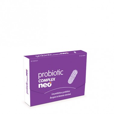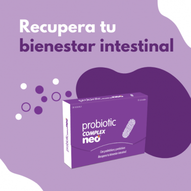 Probiotic Complex Neo con su avanzada combinación de probióticos y prebióticos en formato microgránulo gastroresistente, diseñada para restaurar el equilibrio de la flora intestinal, mejorar la digestión y fortalecer el sistema inmunológico.