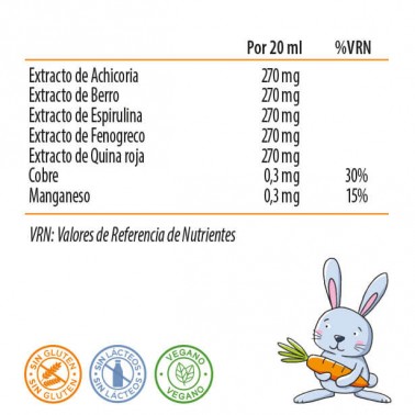 Los complementos alimenticios no deben utilizarse como sustitutos de una dieta equilibrada. No superar la dosis diaria recomendada. Mantener fuera del alcance de los niños más pequeños. No almacenar a más de 30ºC. Agitar antes de usar. Una vez abierto, conservar en nevera y consumir antes de un mes. Debido a la presencia de sustancias naturales, son normales los cambios de color o sabor, sin que ello afecte a la calidad del producto. Para niños menores de 3 años, consultar con su médico o farmacéutico.