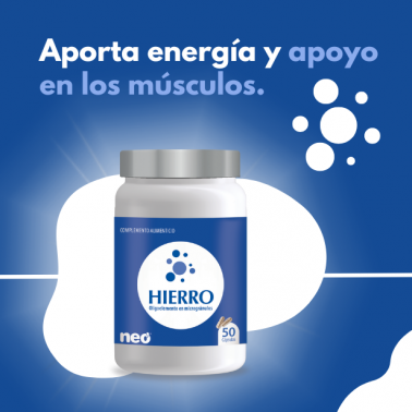 Hierro Neo es un suplemento en cápsulas con microgránulos diseñado para optimizar la producción de hemoglobina, mejorar la oxigenación de los tejidos y prevenir la anemia.