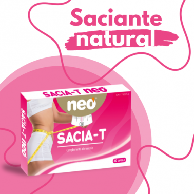 Sacia-T Neo réduit la sensation de faim et aide à contrôler les grignotages entre les repas. Sa formulation incorpore du chrome, un catalyseur métabolique qui normalise la glycémie, et du Slendesta, un agent rassasiant naturel dont l'efficacité et la sécurité dans la perte de poids saine et la réduction du tour de taille et de hanches ont été démontrées dans des études cliniques.