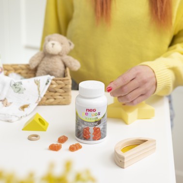 Neo Peques Gummies Vitazinc gummies à base de vitamines et de zinc. Les vitamines favorisent une bonne nutrition et le zinc joue un rôle important dans différentes fonctions métaboliques, dont l'une consiste à optimiser le système immunitaire. 1 gomme par jour fournit la quantité quotidienne nécessaire pour compléter une alimentation de base et éviter une carence en ces nutriments.